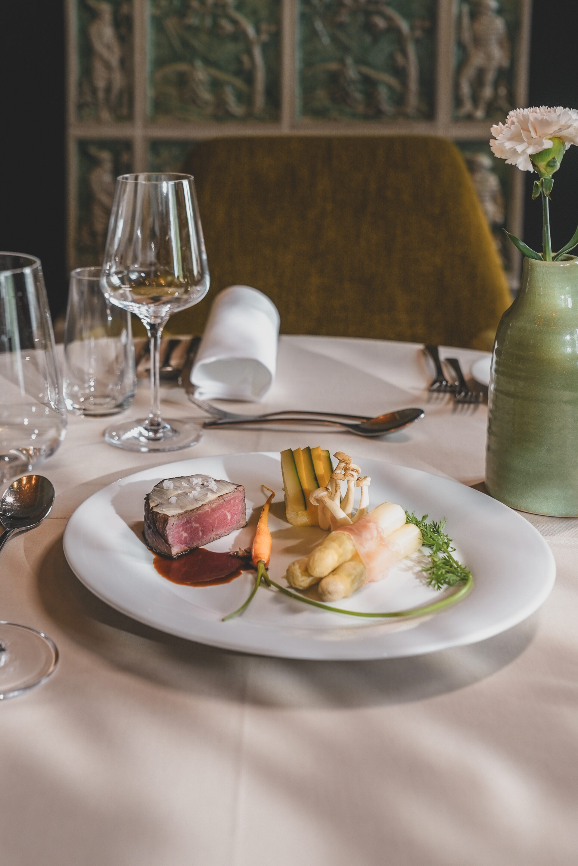 Once you have decided on a dish or a menu, our service team will be happy to advise you on the selection of the right exquisite wines.