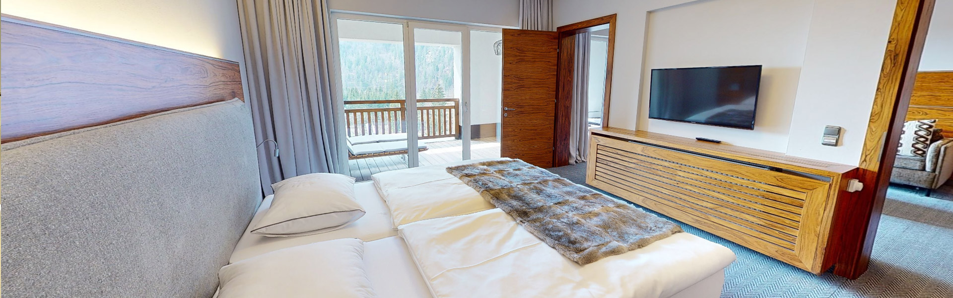 The premium suites in urban style and the manor house suites in alpine design impress with their great location, generous TV equipment, luxurious bathrooms and balcony or 20 m² loggia with comfortable loungers.