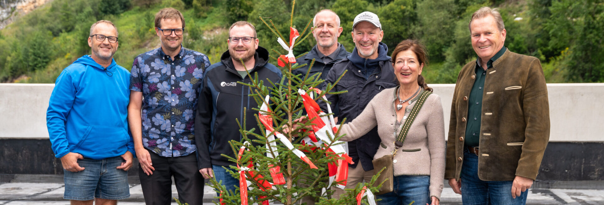 In the picture: Alexander Strobl & Birgit Maier (hotel owners), Hannes Seeber (Empl Bau – site manager), Anton Manzl (Empl Bau – owner), DI Christoph Aigner (Aigner Architects – owner), DI Erwin Haussteiner (Aigner Architects – architect)