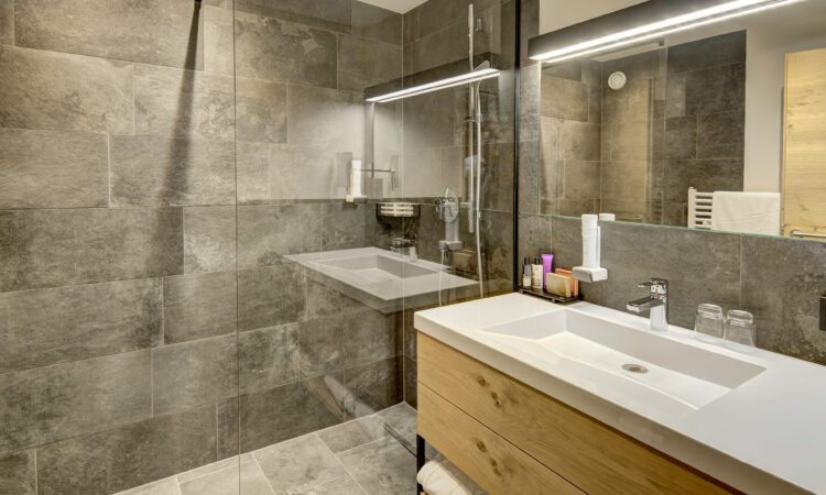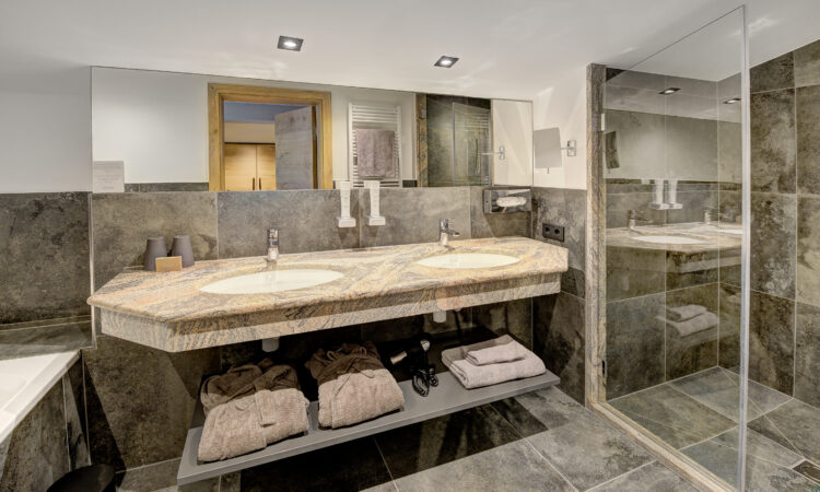 • Luxuriöses Badezimmer mit Walk-in Dusche, Badewanne, separaten WC und Sauna mit Infrarot-Option