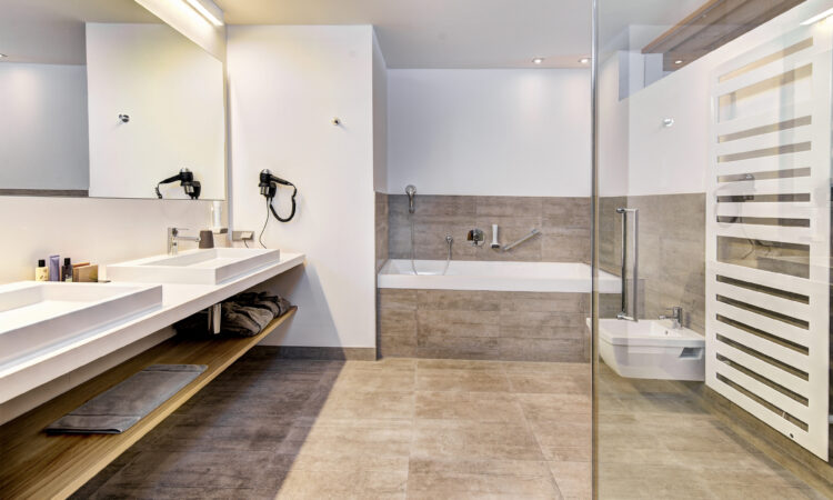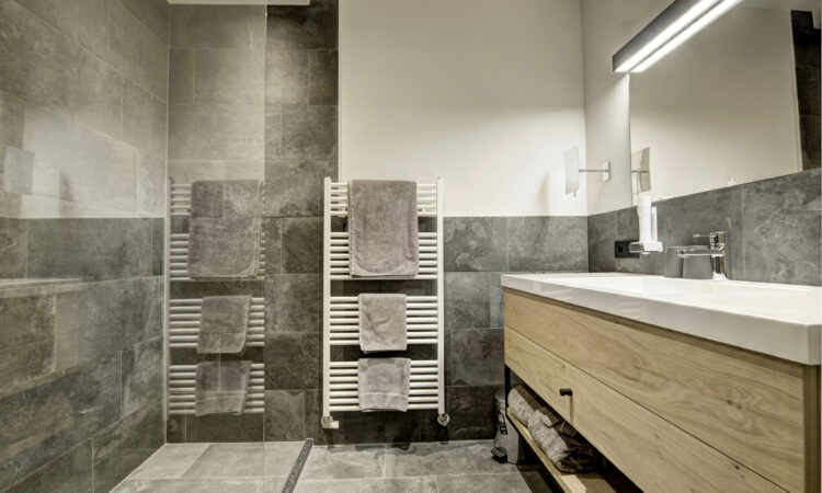 • Luxuriöses Badezimmer mit Walk-in Dusche oder Badewanne, separates WC